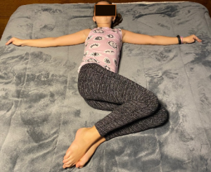 - Segure com a mão direita a face lateral esquerda da cabeça e puxe calmamente para o lado direito, sustentado por 15 – 20 segundos, repita do outro lado;