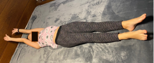 Mantenha as costas na cama, abra os braços em cruz e dobre os joelhos de modo que a planta dos pés permaneçam encostadas na cama. Então, gire o quadril e apoie as duas pernas com joelhos juntas para um lado, segure por 5-10 segundos e leve-as para o outro lado.